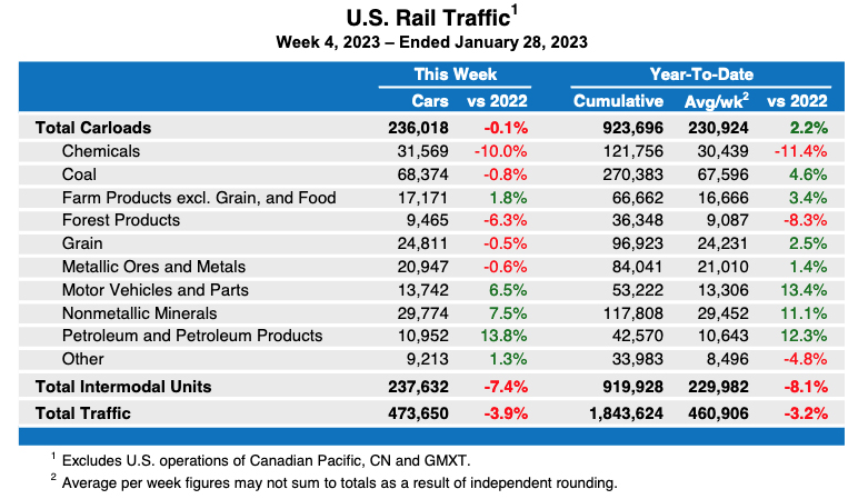 Significant intermodal drop keeps January rail traffic below 2022 figure