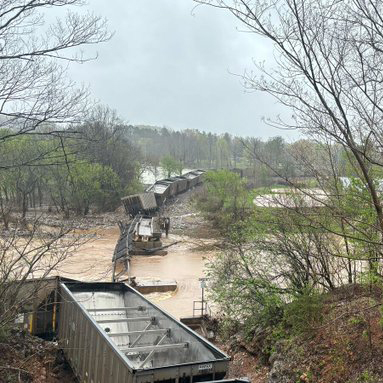 Stationary BNSF train derailed by bridge washout in Arkansas (additional update)