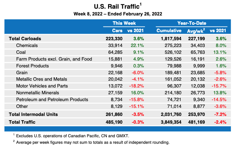 February rail traffic improved, but comparison skewed by 2021 weather issues