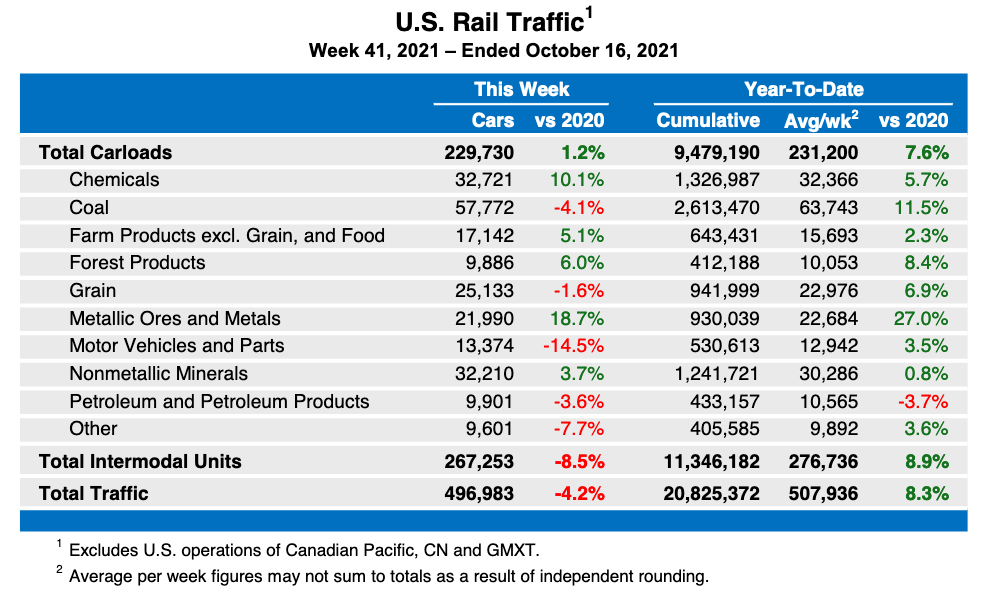Weekly U.S. rail volume remains below 2020 levels