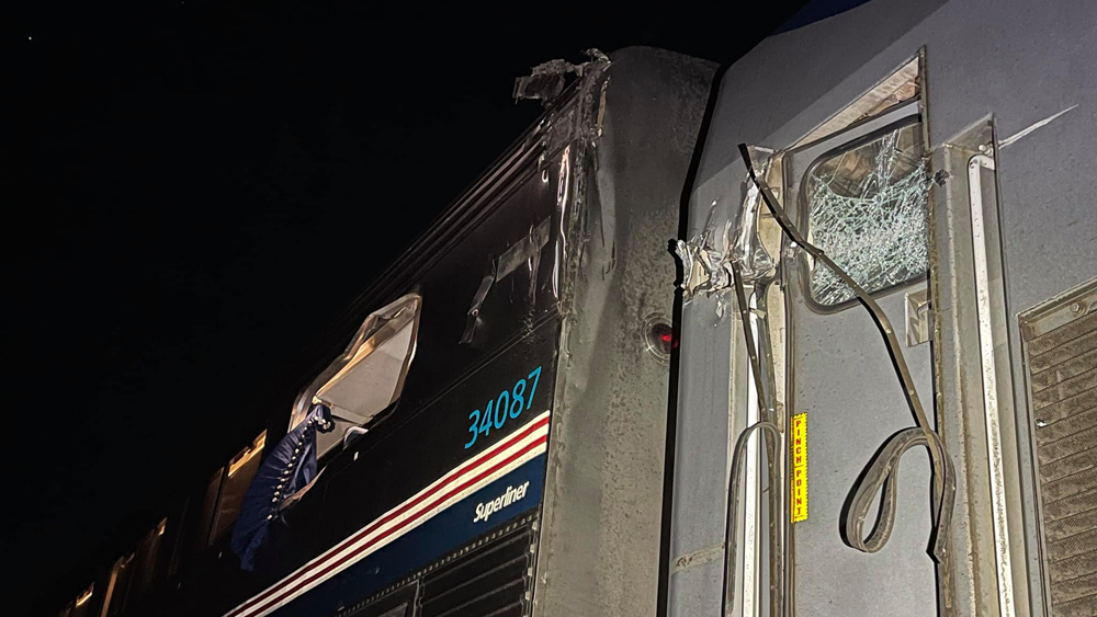 Four injured when Amtrak train hits auto carrier, derails