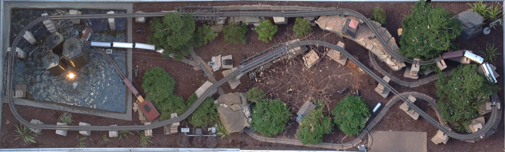 We stacked large stones from a local nursery to elevate one loop of track. We decided to have a second unelevated track section.