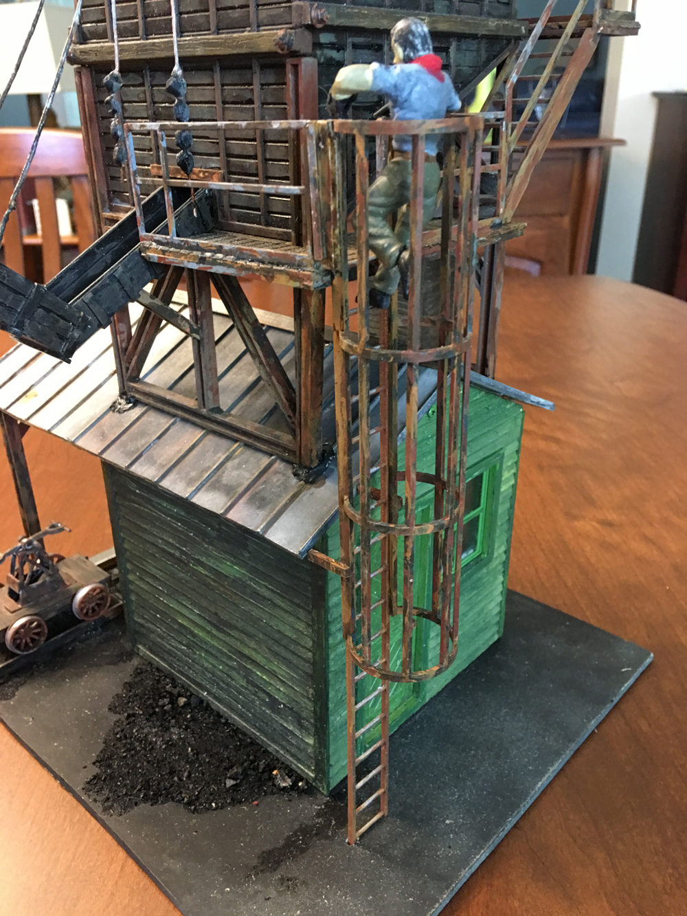 The structure is made from leftover Playmobil western building parts. Without the help of Rene Schweitzer, who sent me an old article about setting up the interior of a sawmill by Dan Parker [See the October 2000 issue —Ed.], I probably would still be working on it.