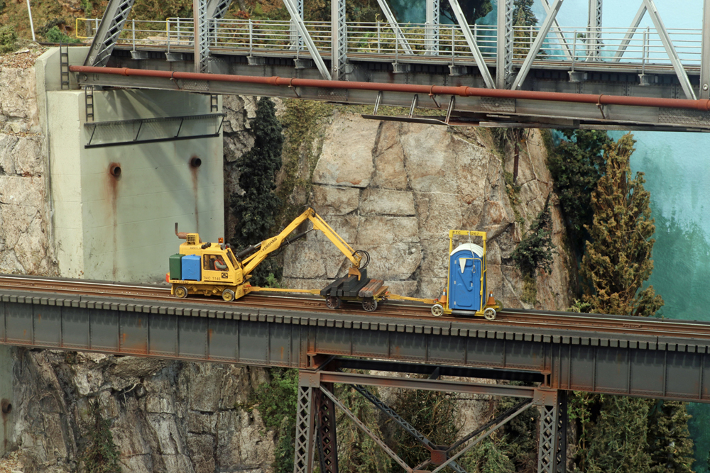 The cart may be displayed on your railroad in a variety of ways. If you have MOW equipment it will be right at home joining that lineup or parked on a siding near a worksite. Many times, the crew, using a crane, will lift the cart off of the rails and simply place it on the ground adjacent to the track. If you don’t have MOW equipment a few of these carts together can make an interesting flatcar load as they are moved from one worksite to another.