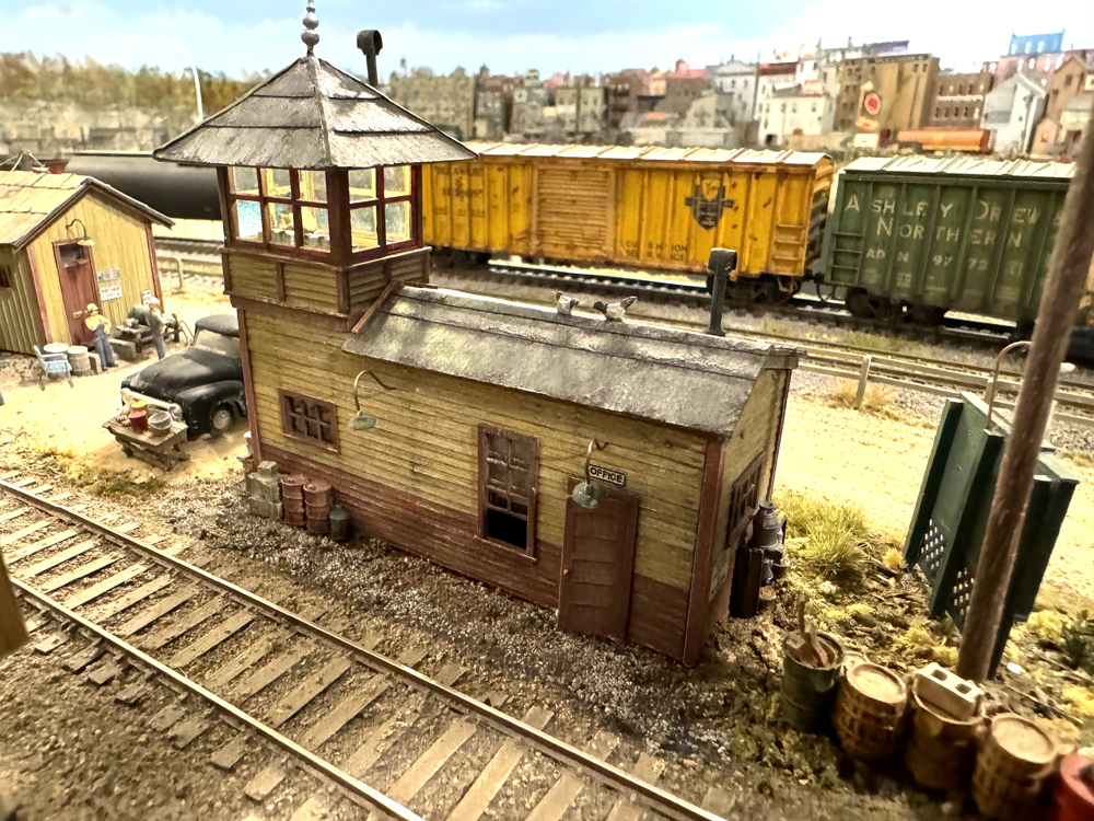 Admittedly, the larger portion of the final building is scratchbuilt. However, the Atlas elevated gate tower plays an important role in the structure, as it was much easier to graft the well-detailed plastic part onto the yard office than it would have been to scratchbuild it.