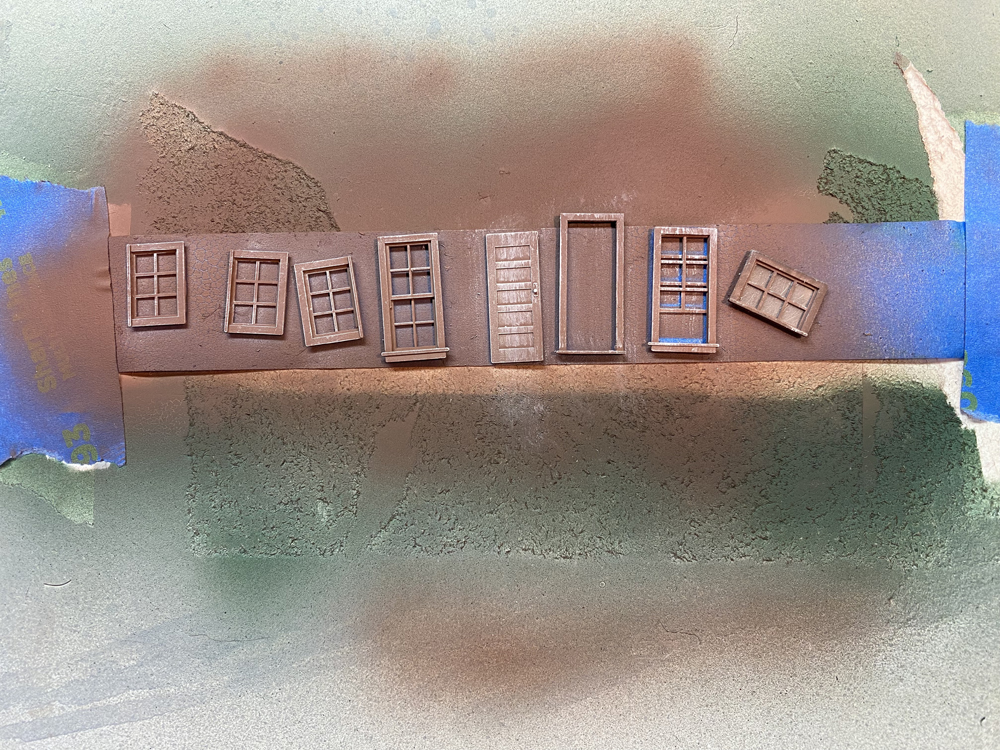 When I had everything collected, I primed the tower parts, doors, and windows. I then set all of those things aside to dry overnight.