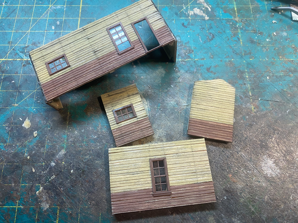 I should add that I applied the acetate to the window castings before I glued them to the walls. It’s much easier to do this step before you assemble the wall sections. I then added another coat of stain to darken the paint on the siding and the windows.