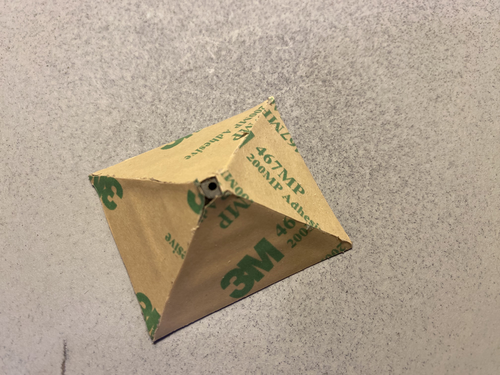 For the roof of the main building, I cut two pieces of cardstock, leaving a small overhang on the front, rear, and right side. I then covered the cardstock with transfer tape. This is a double-sided adhesive tape made by 3M, item no. 467MP. I like it better than ordinary double-sided tape as it has a paper coating to protect the adhesive sides until you are ready to use it, making it much easier to cut and apply to models.
