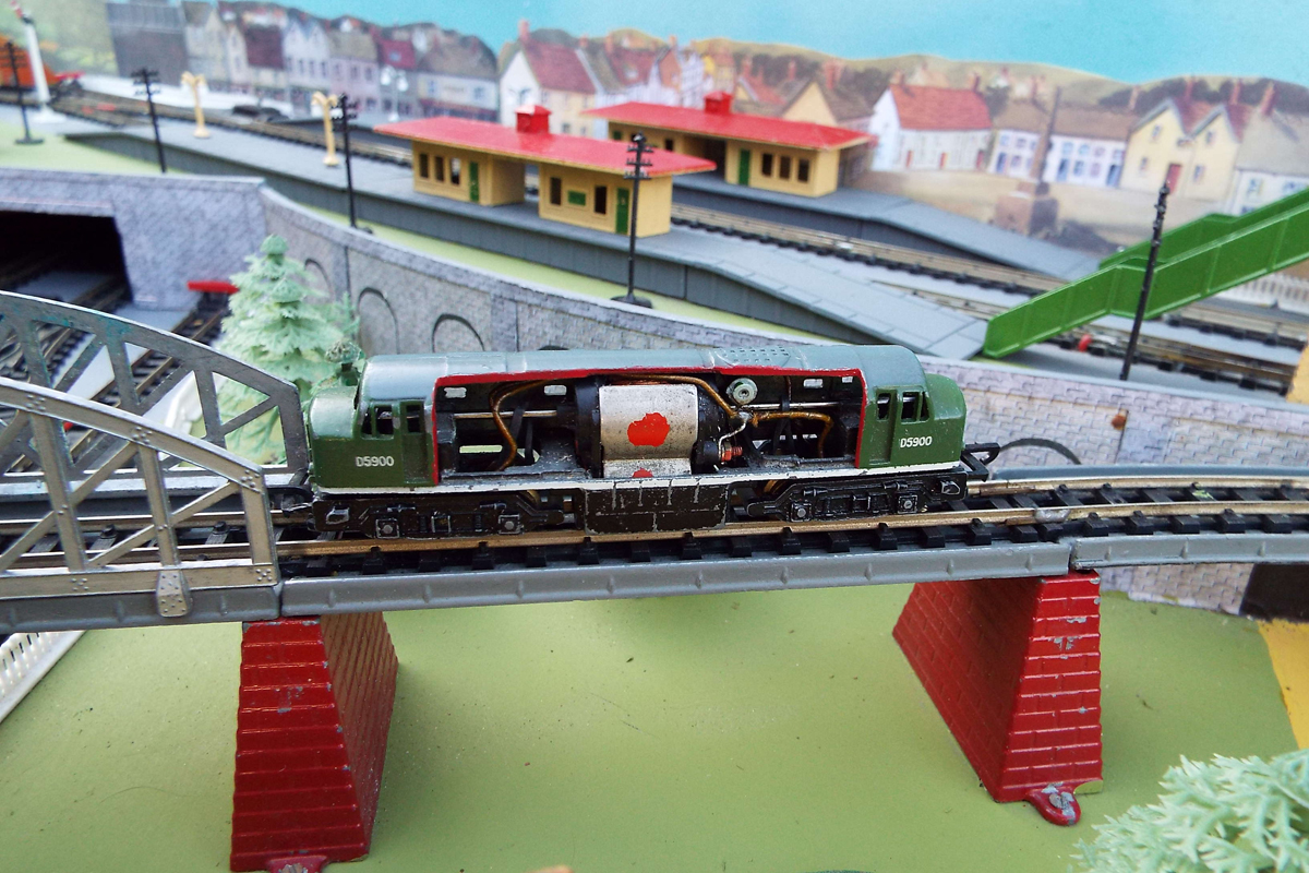For extended exhibition use, I have also re-motored some locomotives with a five-pole can motor and extended shafts, which are held in place with heat shrink tubing. Lead sheets are used to fill the motor magnet space, giving a platform for the motor to sit upon, although some of the old motors are still strong and usable. The rubber bands are always an issue, and in the past I have used replacement Hornby Dublo traction tires, but now I make my own from neoprene tubes for the purpose. The trick is not to make them too wide.