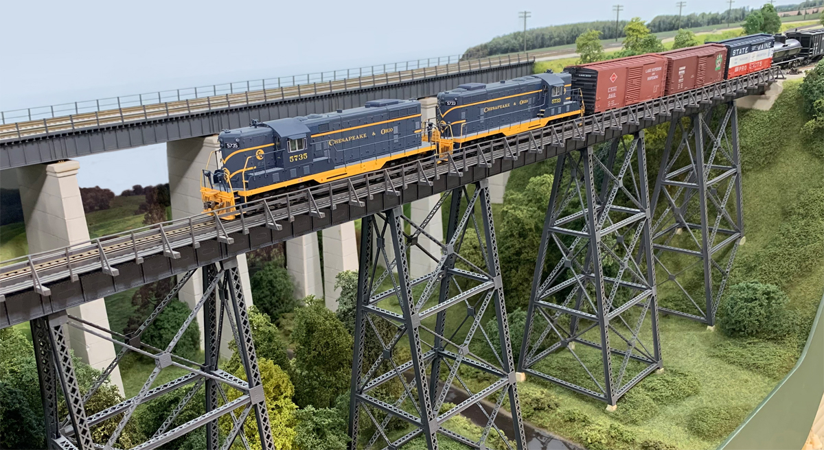 The Sun Parlour Lines features bridge traffic on the Chesapeake & Ohio, New York Central, and Pere Marquette