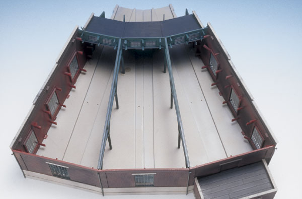 The model has a large foundation with slots for installing standard Atlas sectional track or flextrack. Since most roundhouses had the area between the rails flush with the rest of the floor this would be a nice detail and an easy-to-add one using plain sheet styrene cut to fit between the rails.