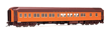 Handsome heavyweights. Branchline is offering painted kits with authentic car names. Although few heavyweight sleepers wore bright paint jobs until well into the streamliner era, the Milwaukee Road’s “yellow and red” (actually orange and maroon) passenger car colors date back to the early 20th century. Branchline has even painted the windows to represent the natural brass sash used on many heavyweight Pullmans – a nice touch.