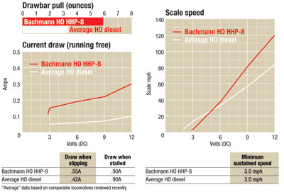 Drawbar pull: 5.92 ounces (28 free-rolling passenger cars on straight, level track)