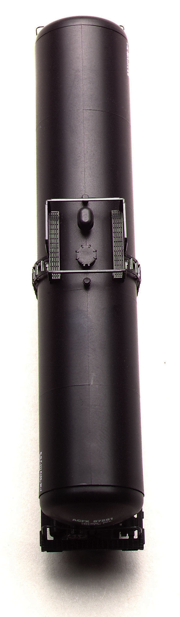 The car weighed one ounce, a tad lighter than the NMRA’s Recommended Practice of .5 ounce plus .15 ounce per inch of length, but the car should operate well on most layouts as it is. To add weight, remove the tank cap from the non-brakewheel or “A” end for access to the tank body interior.