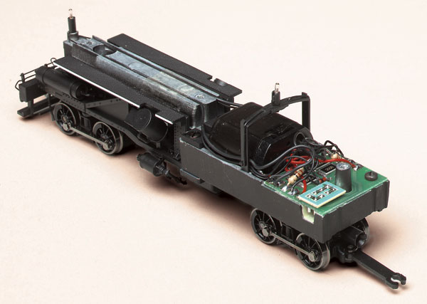 A printed circuit board concealed in the tender operates the model’s directional lighting. The PC board also includes an NMRA-recommended receptacle and jumper plug for easy conversion to Digital Command Control (DCC). A metal weight is fitted into the boiler, but there’s plenty of room above it for a plug-and-play decoder.