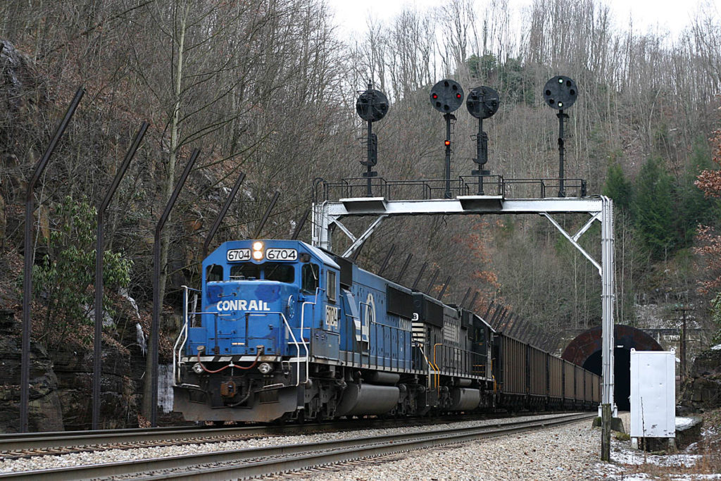 Norfolk Southern SD60 No. 6704 emerges westbound from Elkhorn Tunnel on the Pocahontas main line in West Virginia on Dec. 19, 2008. Photo by Grady McKinley […]