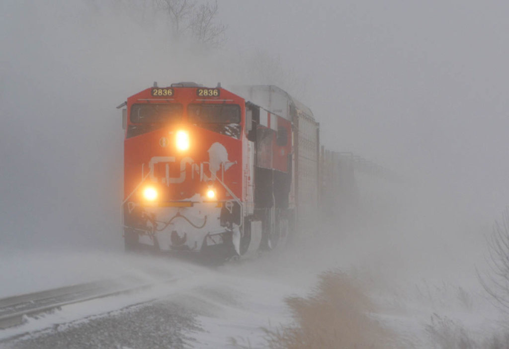 Canadian National train M345 heads north at Rantoul, Ill., on the Chicago Subdivision after meeting a southbound in subzero temperatures and fierce blowing snow. Photo by Erik Coleman […]