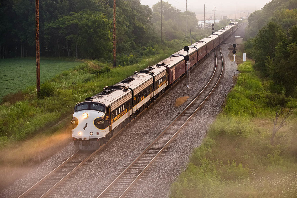 Norfolk Southern office car special No. 955 creeps through the fog at Delphi, Ind., on the morning of Aug. 3, 2014. Photo by John E. Troxler […]