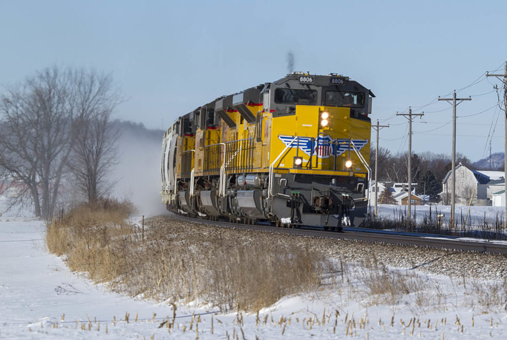 Not looking like a Canadian Pacific train, empty frac sand train No. 691 rolls through Bangor toward Oakdale, Wis., with three Union Pacific SD70ACes leading the charge on Jan. 25, 2014. Photo by Matt Krause […]