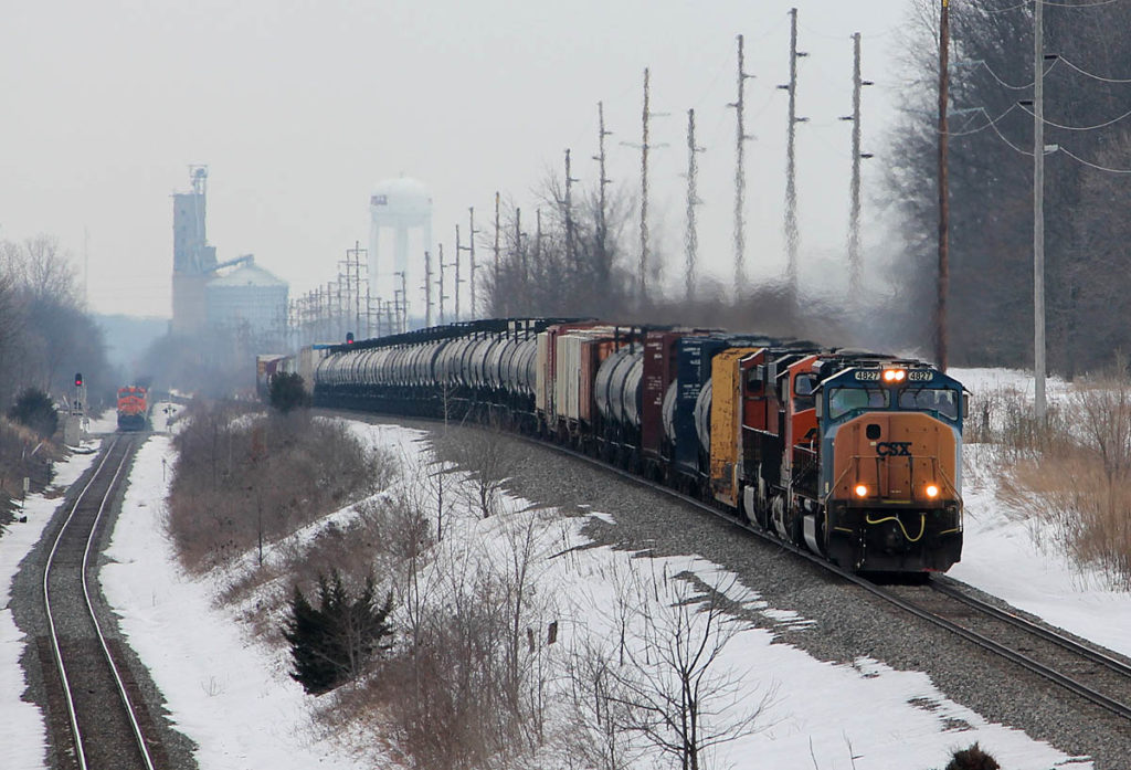CSX train Q389 crests “Hicksville Hill” near the Ohio-Indiana line on Track 2 as an empty BNSF-powered coal train waits for a crew on Track 1 in March 2014. The bridge has since been removed. Photo by Joe Kohnen […]
