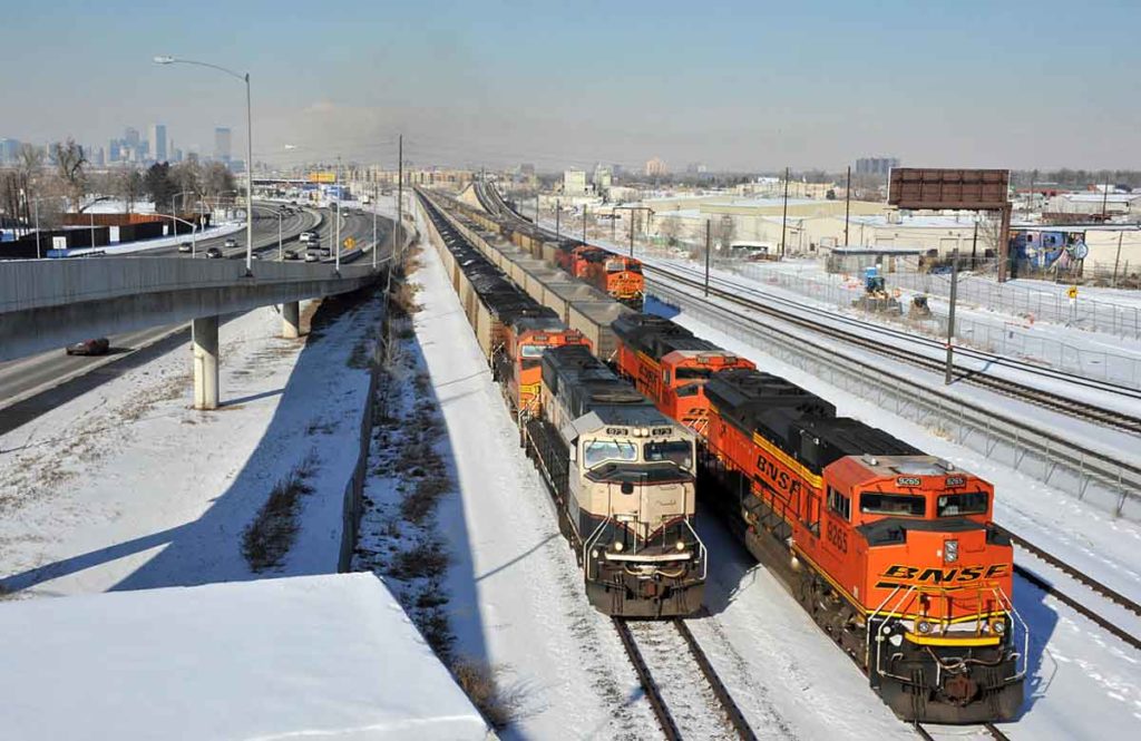 A BNSF loaded coal train approaches the Evans Avenue overpass in Denver, Colo., as two empty hopper trains wait to make their way north on Feb. 8, 2014. Photo by Michael S. Murray […]