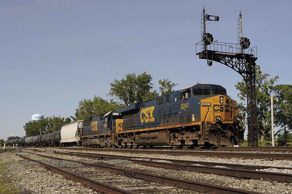 CSX GE ES44DC No. 5251 leads a southbound ethanol train at Deshler, Ohio, on June 14, 2014. For now, the classic Baltimore & Ohio color position light bracket signal remains. Photo by Dale A. DeVene Jr. […]