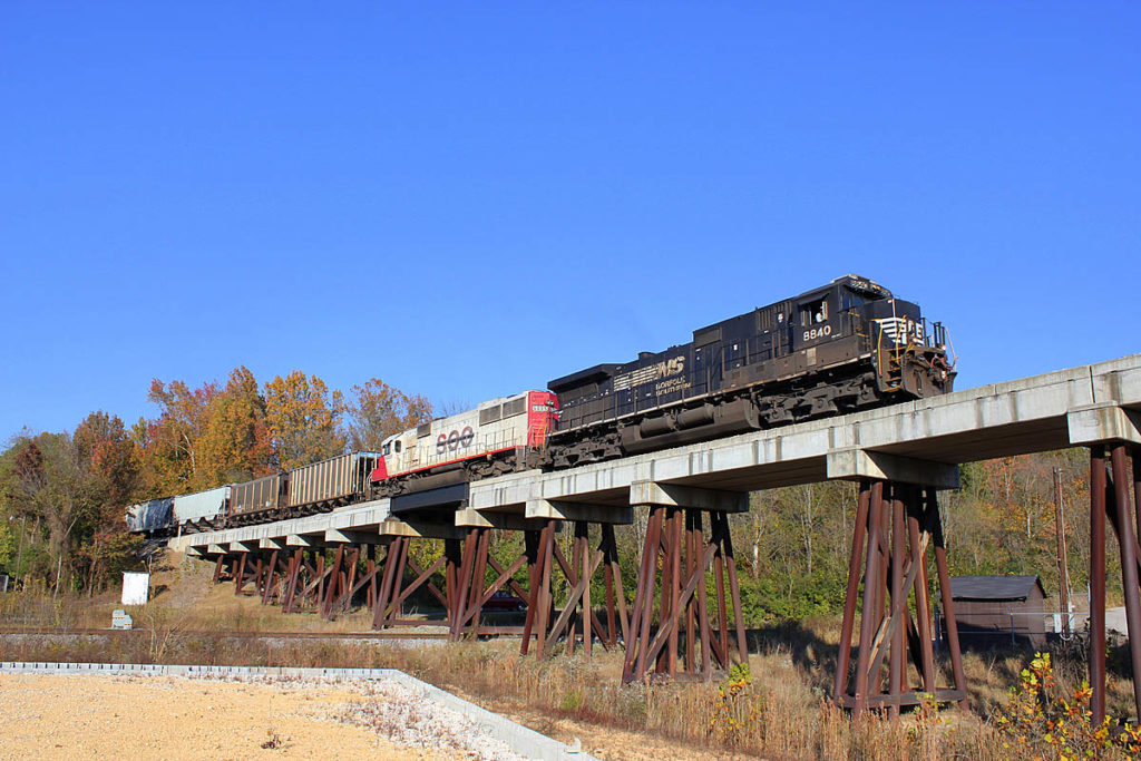 Norfolk Southern train No. 334 makes its way eastbound as it flies over the NS East End District in Leeds, Ala., with C40-9 No. 8840 leading a leased unit on Nov. 5, 2011. Photo by Bradley Bates […]