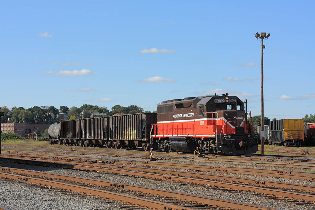 Providence & Worcester train WX-2, with GP40-2 No. 3002, works the hump yard at Worcester, Mass., on the afternoon of Aug. 31, 2009. Photo by Thomas Mik […]