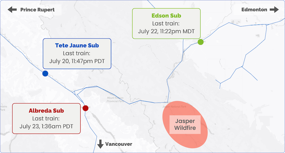 “This is a major disruption and comes at a particularly vulnerable time,” RailState Chief Commercial Officer John Schmitter said. “There are other large fires threatening rail lines right now and months remaining on fire season.”