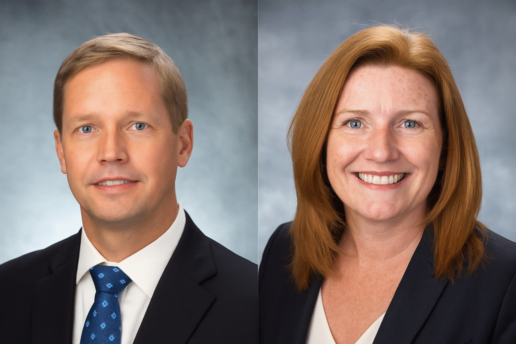 Kevin Boone, left, has been named CSX chief financial officer, while Maryclare Kenney has been named the railroad’s chief commercial officer. CSX