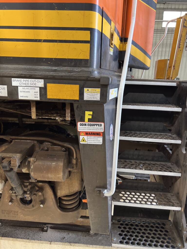 By year’s end the sensors will be installed on 33 ES44C4s and one ES44AC, BNSF spokeswoman Kendall Sloan says. ODIN-equipped units have decals affixed next to the steps on both the engineer’s and conductor’s side, as well as inside the locomotive cab above the engineer and conductor.