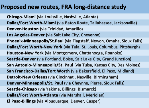 This is the fifth installment of my analysis of the FRA New Long Distance Routes Study. These final seven routes are interesting, but possibly some are a bit overly ambitious or complex. Others may work better if at least partially rerouted.
