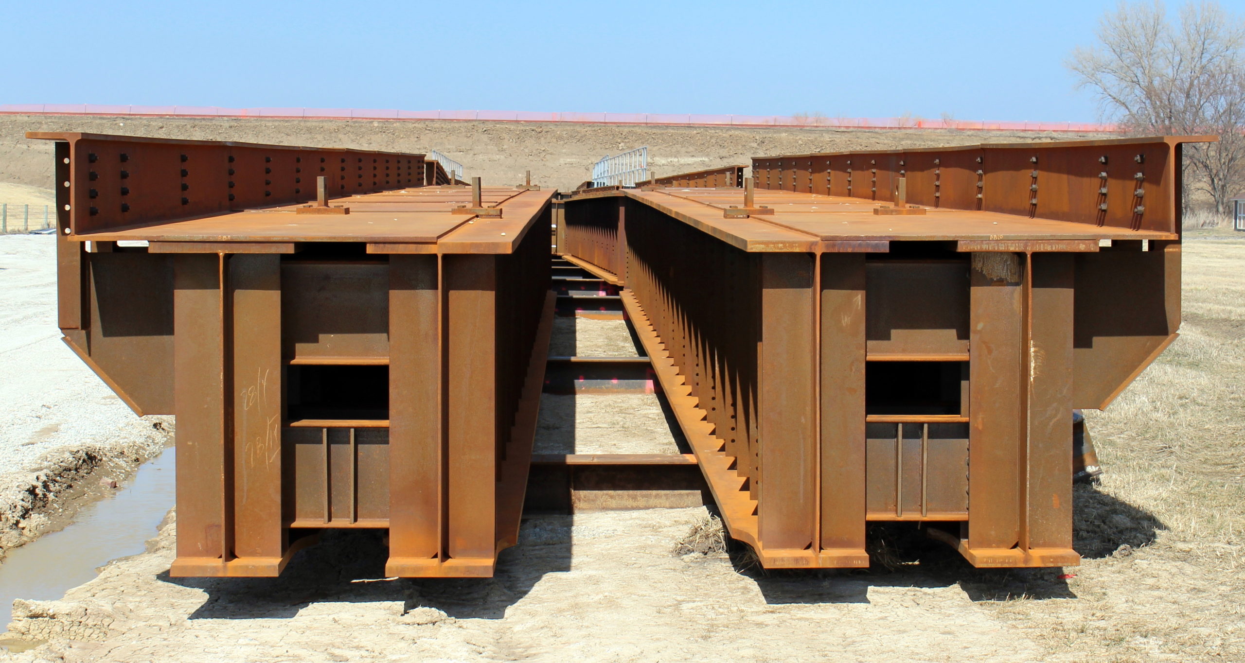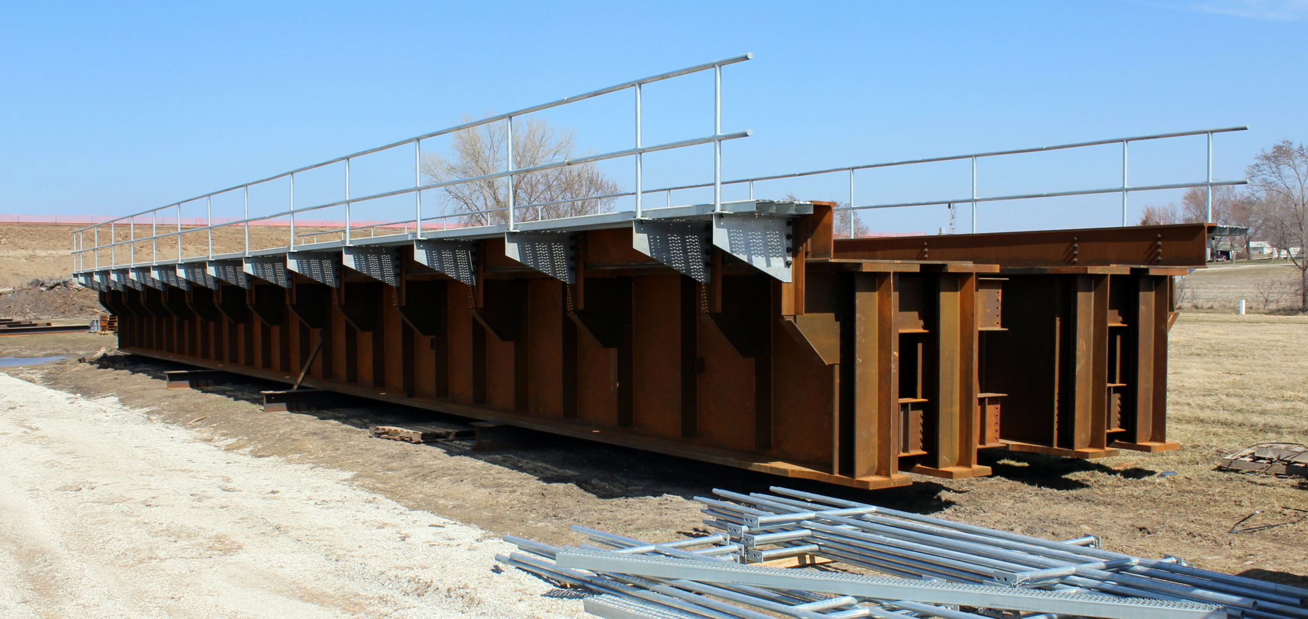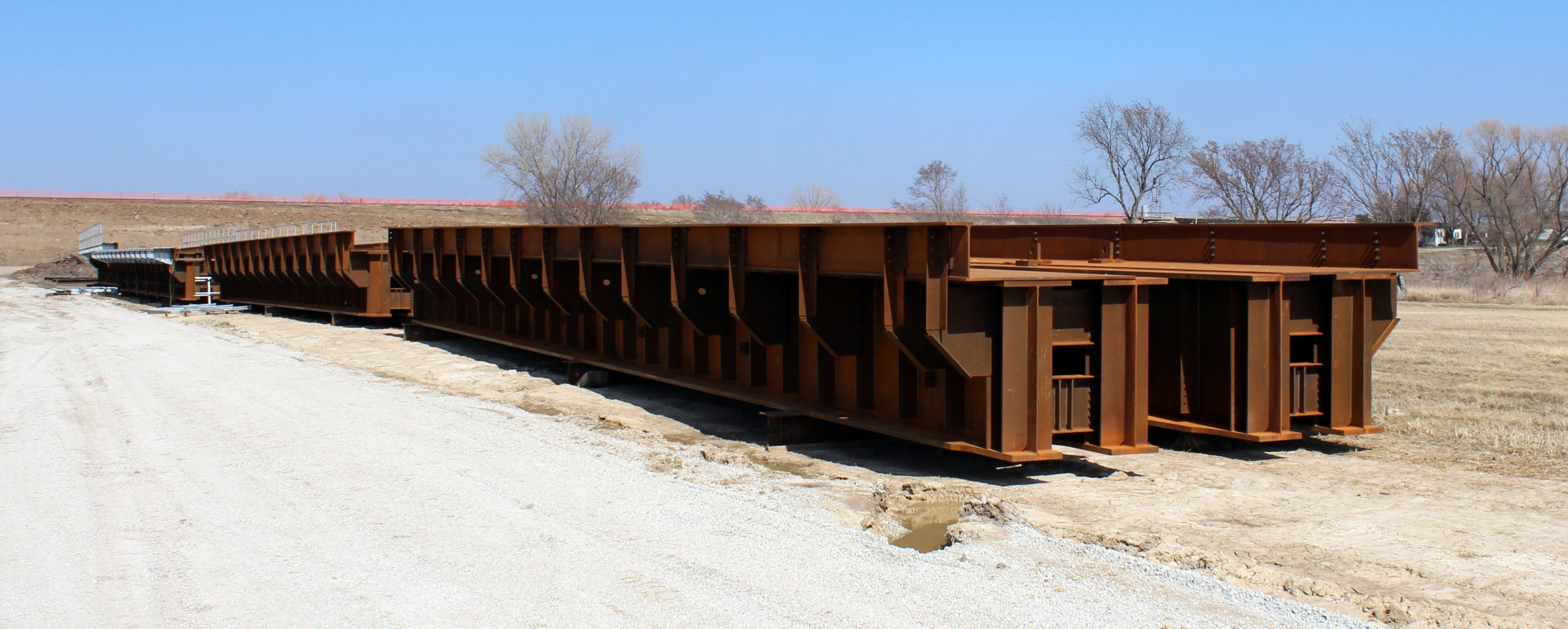 In an open farm field just east of Milford, crews are assembling bridge deck sections for new additional bridges being built along the 5.7 mile double-track project between Pleasant Dale and Milford. Workers are putting together three sections here. Each bridge deck is built in half sections, for easier movement to the individual sites.