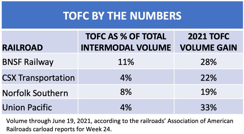 If TOFC is about to ride off into the sunset, it’s hard to see how this will help intermodal grow. At one time, railroads sought to expand the intermodal universe through innovations like RoadRailer and Canadian Pacific’s Expressway short-haul TOFC service. No longer.