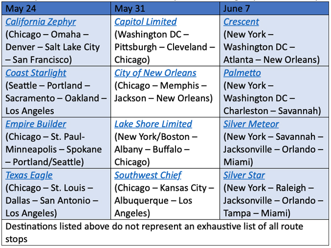 WASHINGTON — Anyone ready to lock in summer travel plans that involve long-distance trains will find lower fares on days that have had no service since last October.