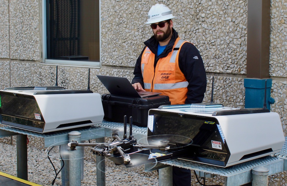 BNSF also has a tech solution for keeping tabs on where containers and trailers are parked and what parking spots are empty. At Alliance it’s testing a system that pulls real-time data from GPS trackers on containers, cameras mounted on hostler rigs, and aerial drones. “We’ve created a data collection engine that can take all of those and combine them so that we know with high certainty where your box is,” Gabriel says.