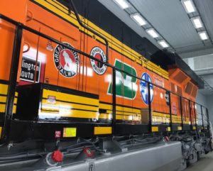 Railroad says engine with logos of predecessors is first of 10 to mark its formation in 1995