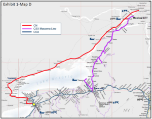 CN announced its interest in acquiring the line and asked the STB for approval in October 2019 [see “Canadian National seeks regulatory approval for acquisition of CSX line …,” Trains News Wire, Oct. 14, 2019]. The STB approved CN’s acquisition of the line through its Bessemer & Lake Erie subsidiary in April 2020. But the board ordered CSX and CN to eliminate a provision in the sale agreement that would bar CN from ever negotiating direct interchange with the Finger Lakes Railway and the New York, Susquehanna & Western in the Syracuse area. [See “Regulators approve CN purchase …,” News Wire, April 7, 2020.]