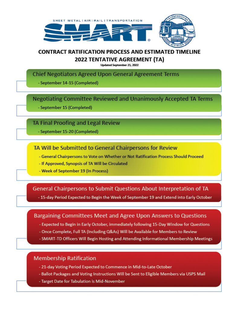 SMART-TD this week outlined the similar steps it will follow during the ratification process, with a 21-day voting period to begin in mid to late October, followed by ballot tabulation in mid November.