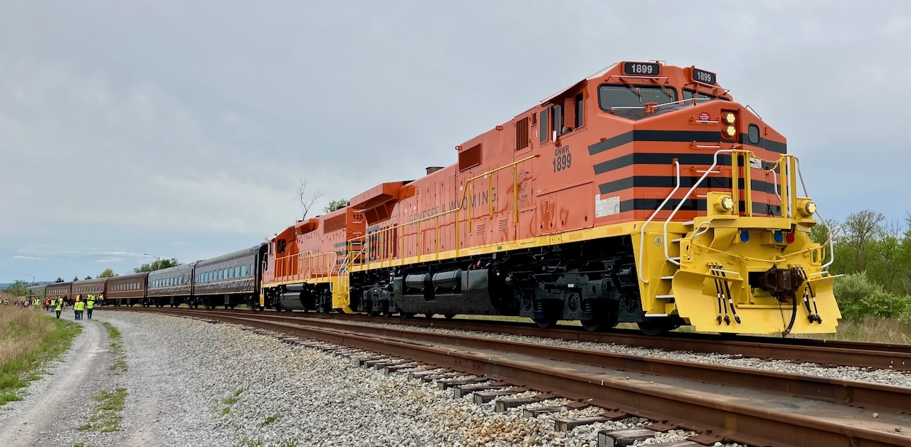 The unit numbers are a nod to GNWR’s founding year and its 125th anniversary. The 1899 bears the name E.L. Fuller, who purchased the Genesee & Wyoming Valley Railroad out of bankruptcy and renamed it the Genesee & Wyoming Railroad on March 24, 1899.