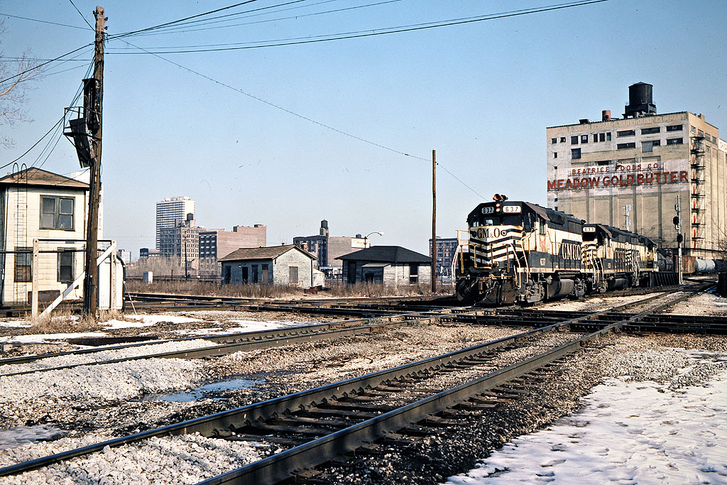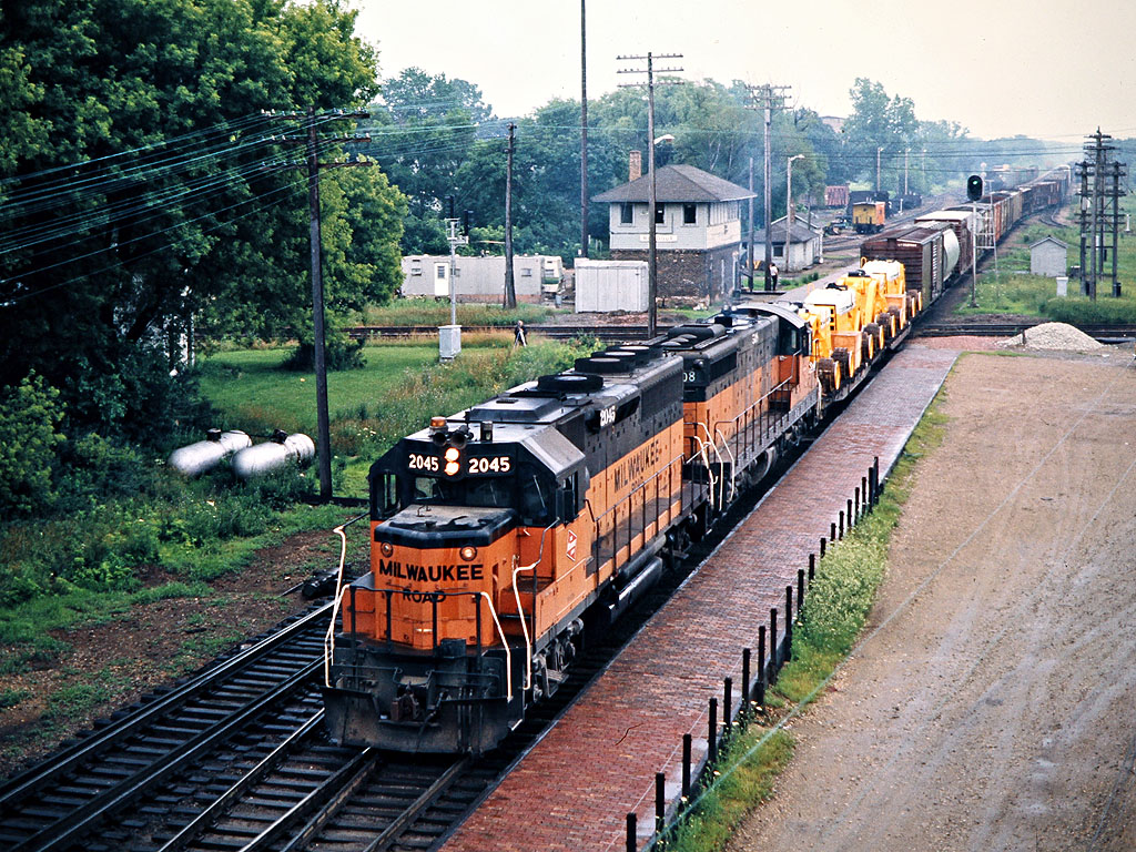 The train in the Milwaukee Road photo must be making a backing move into the EJ&E interchange yard. Notice the green aspect on the signal.