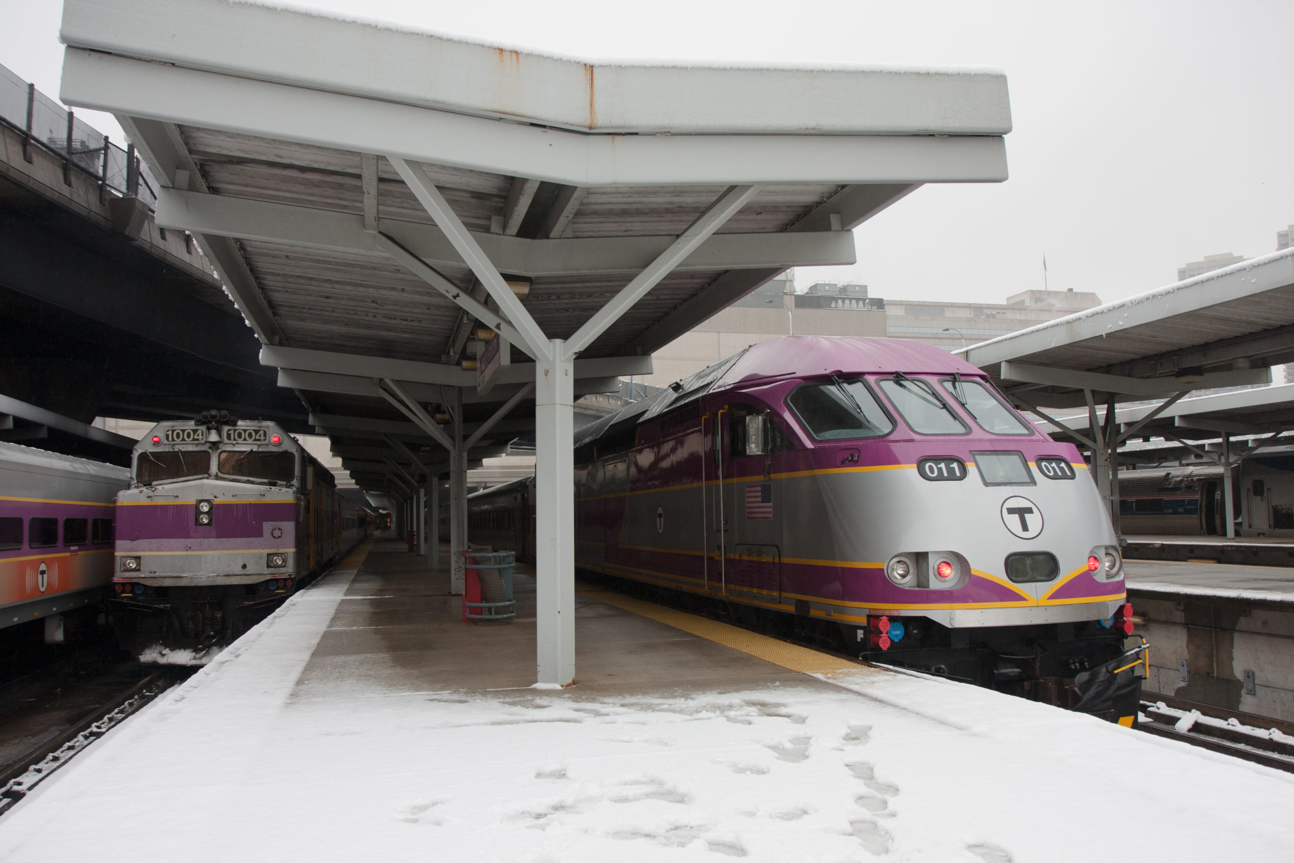 MBTA’s oldest and newest commuter power share a platform at North Station: F40PH No. 1004 and MP36PH-3C No. 11 (purchased from the Utah Transit Authority).