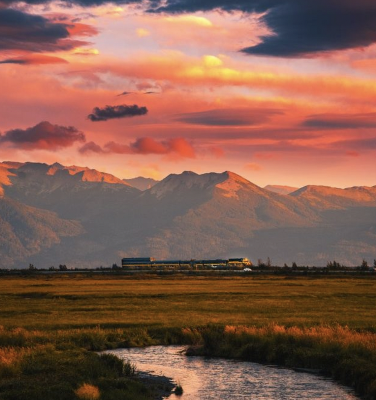 Your last full day will take you on an adventure down Kenai Penninsula to Seward. Breakfast will be served while viewing the sunrise around the Turnagain Arm. In Seward, you’ll enjoy a 6-hour cruise through the Kenai Fjords National Park. This cruise explores the world of whales, wildlife, and glaciers found in the fjords. Experienced captains will narrate your journey and point out the spectacular sights while providing information on the area’s wildlife, history, and geology. A private farewell dinner will be served on your return train to Anchorage. As the sunsets on Alaska you’ll say your goodbyes to the land and fellow guests.