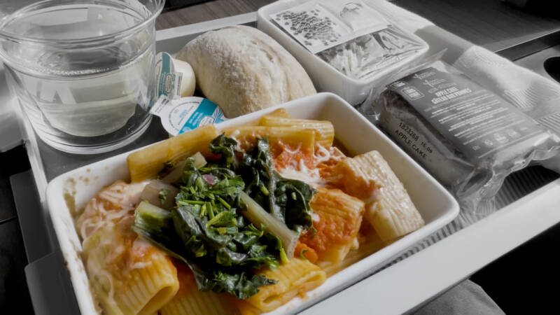 After exchanging pleasantries, we scanned the dinner menu to find beef, fish, and pasta options all available. I couldn’t resist the opportunity for a comparison to Amtrak’s fabled Flat Iron Steak, so the Mushroom-glazed Beef Pot Roast paired with a Molson Canadian lager would be my meal selection. Different cuts of beef, but it was difficult to discount the quality of the Ocean’s re-heated and plated offering.