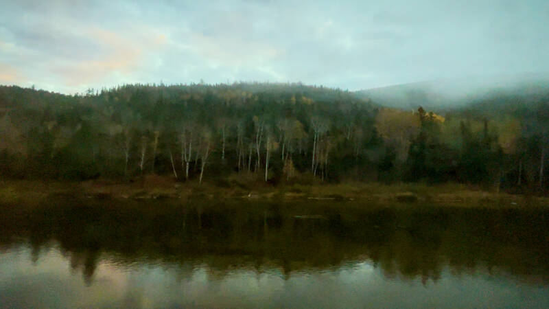 After dinner, we retired to our cabin, now reconfigured for much needed slumber. Sleep in the upper bunk was equal parts restful and required, given my ambitious goals for daytime hours aboard the Ocean. Awake and shower in time to enjoy a Breakfast Donair Frittata at dawn was the plan. Morning fog and clouds be damned, we’d still spend the duration of the day gazing upon the rural towns and natural beauty along the Lower St. Lawrence River, the Matapédia Valley, and then through New Brunswick.