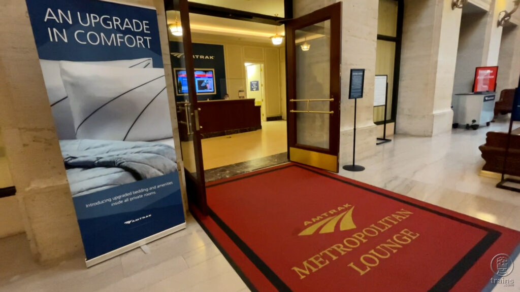 The two-story Metropolitan Lounge has a variety of seating options available, including tables for those who wish to eat or play cards, desk spaces with power outlets for those wanting to get some work done or charge devices and comfortable furniture throughout for those simply wishing to relax before train time.