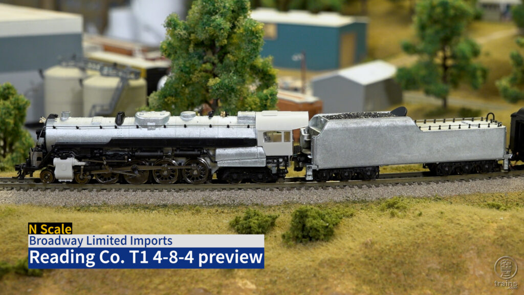 A pre-production sample of the Broadway Limited Imports N scale Reading T-1 paid a visit to our Milwaukee, Racine & Troy State Line Route layout. Model Railroader editor Eric White and senior editor Cody Grivno discuss the features on the die-cast metal and plastic model and take the 4-8-4 for a spin around the 4 x 12-foot layout.