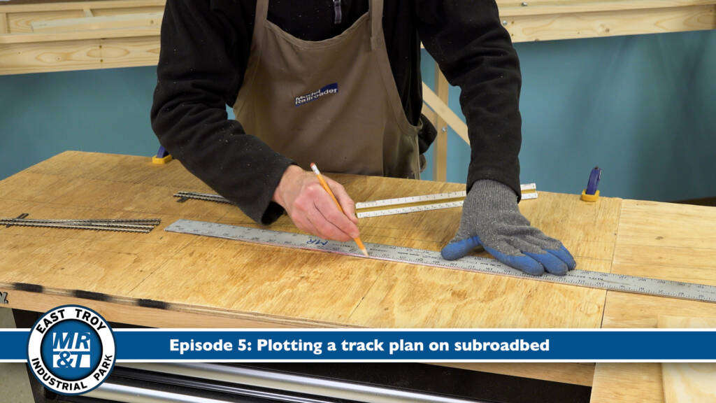 In this episode, David demonstrates a simple process for plotting the track plan for the HO scale East Troy Industrial Park (ETIP) model railroad onto the essential layer of subroadbed material. After measuring twice, he then shows the next steps to carefully cutting out the parts and pieces needed to assemble a foundation for layout trackwork.