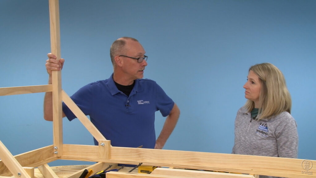 David and Jenny jump right into the assembly of the removeable, wood legs and braces used to elevate the L-girder benchwork off the ground. Along the way, David shares construction tips and tricks that apply to the construction of any layout – large or small!
